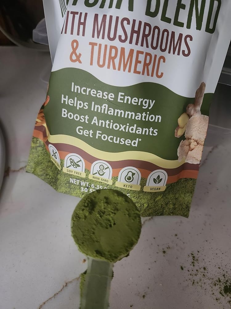 This has been a really nice coffee alternative in my daily routine. The powder mixes super easily with water, no clumps at all and the color is a really vibrant green, which makes it feel fresh and high quality right away. The taste is smooth and earthy than a muddy mushroom drink, with just a hint of spice that doesn’t overpower anything. I get a steady, calm energy from it that actually lasts, without the jitters or crash I usually feel after coffee, which I really appreciate. Ingredient-wise, I love that it’s organic and packed with functional mushrooms and adaptogens, and the monk fruit sweetness is clean and subtle, though personally I would have preferred it without any added sweetener due to my diet restriction. One small thing I noticed is the wording on the bag, it says helps with inflammation, which felt a little oddly phrased and could be instead - help with anti inflammation.