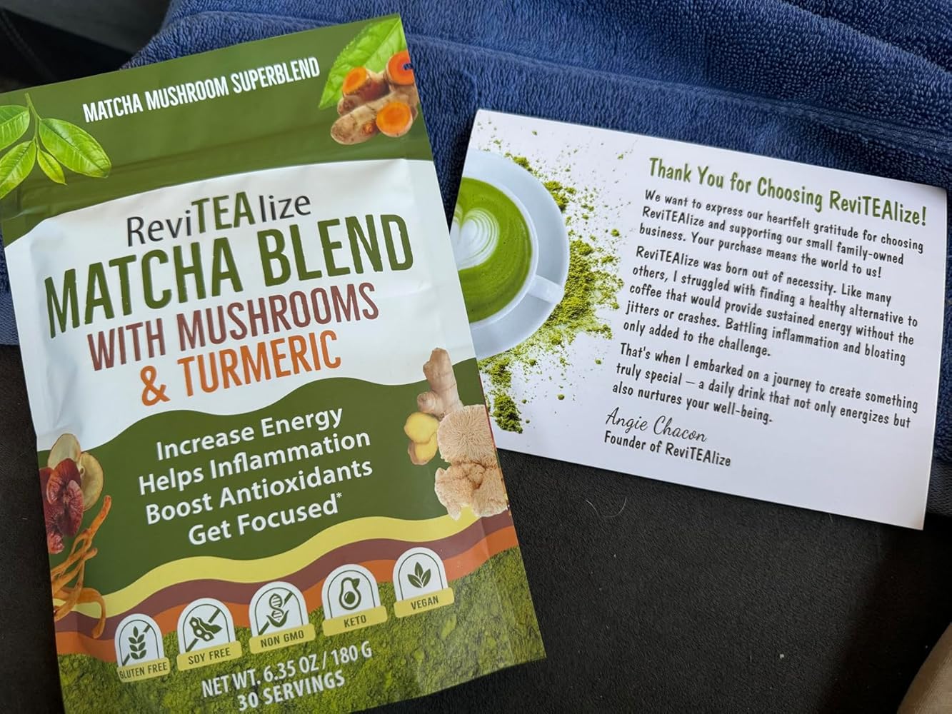 The revitealize matcha blend came in great packaging. The flavor is great. It isn’t too bitter like some matcha can be for me. I look forward to seeing the benefits over time.