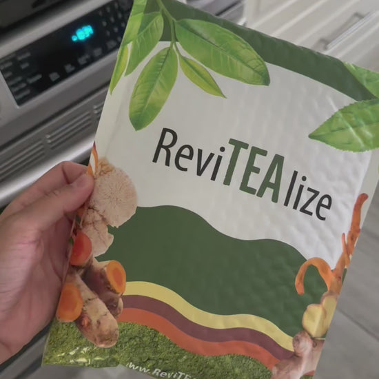 ReviTEAlize your daily routine with this Matcha Mushroom Green Tea Blend. Drink it Hot or Cold or as a coffee alternative. Try ReviTEAlize Matcha Mushroom Super Blend today!